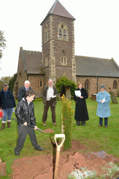 The Tree was presented by Mrs Jean Snelson and planted by Tom Owen and Archie Trow, pupils from Corbett Primary School in Bobbington, and Mr Trevor Rees (Chair of Bobbington Parish Council).